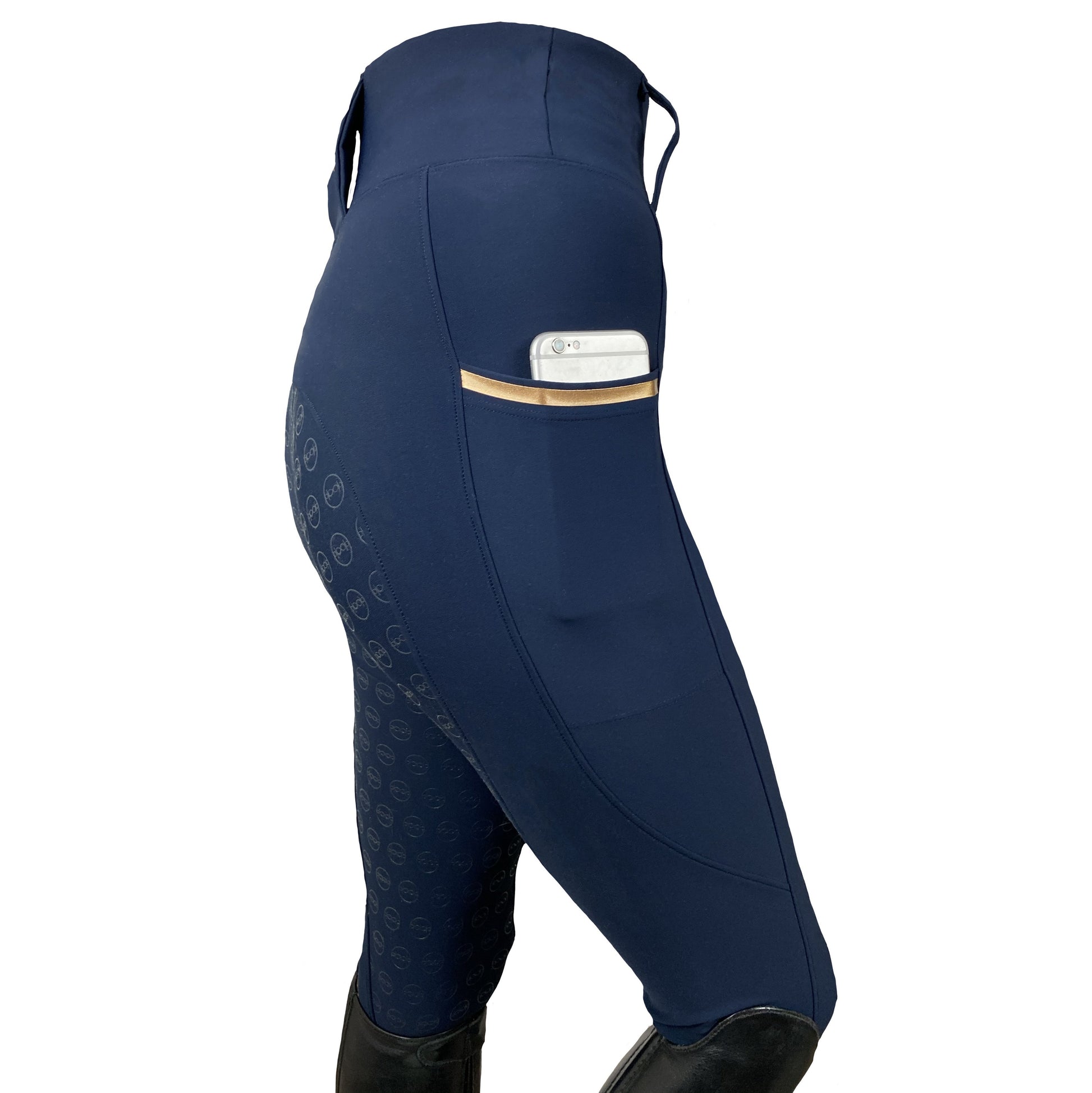 Los leggings de equitación EQUIFINITY están equipados con amplios bolsillos. Se colocan de manera que no se restrinja su libertad de movimiento.